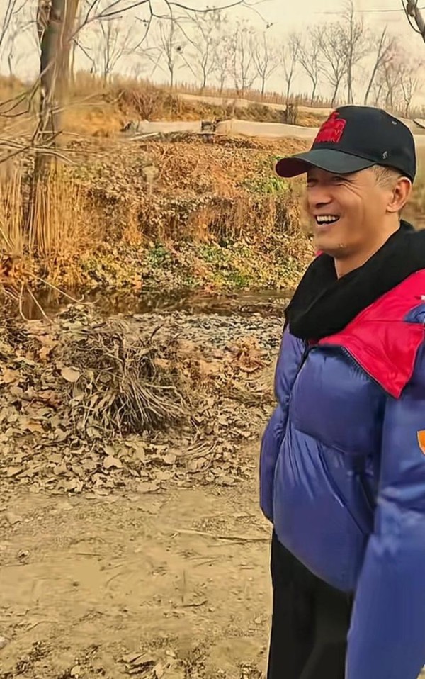 11月22日,演员郭晓东现身山东老家,他穿着臃肿的羽绒服,戴着着棒球帽,走在村老家的土路上,满脸笑容。