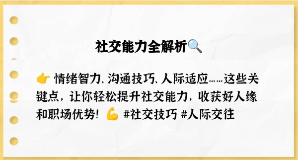 社交能力,或者说人际交往能力,是衡量个体在社会交往中所展现出的沟通、合作和解决问题的综合能力。它涉及到多个方面的能力,以下是一些主要方面: