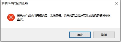 4、提示相关文件或文件夹被锁定,无法安装,请关闭安全防护软件或更换安装目录后重试