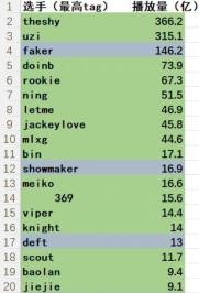 在这个以英雄联盟选手在DY短视频平台总播放量为统计标准的榜单中,TheShy以366.2亿的播放量稳居榜首,Uzi紧随其后,播放量达到315亿,而Faker则以146亿位列第三。