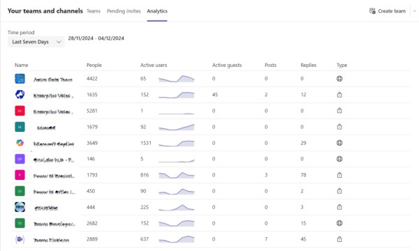 For those who need to monitor Teams usage in their organization, we recommend using the native ‘Teams Analytics’ feature, which offers comprehensive insights into team and channel activities. More information can be found in the following documentation: View analytics for your teams in Microsoft Teams – Microsoft Support