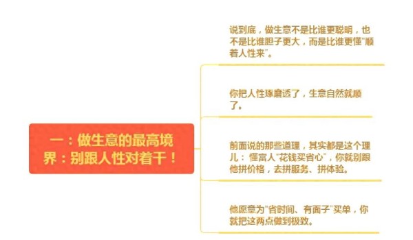 做生意的精髓在于顺应人性,而非逆势而上。深入理解顾客的需求和动机,是成功的关键。富人追求的是省心和面子,那么我们就应该专注于提供优质的服务和体验,而非仅仅追求价格优势。新手往往更关注生存,因此初期应专注于学习成功者的经验,夯实基础,再寻求突破。顾客往往希望获得实惠,所以可以通过小恩小惠来增加他们的忠诚度。总的来说,遵循人性的规律,我们的生意之舟才能平稳快速地驶向成功的彼岸。