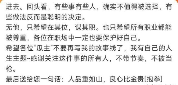 相比那些遇负面新闻躲猫猫或者装失忆的人,她这种坦诚面对,无疑给同行们上一课。