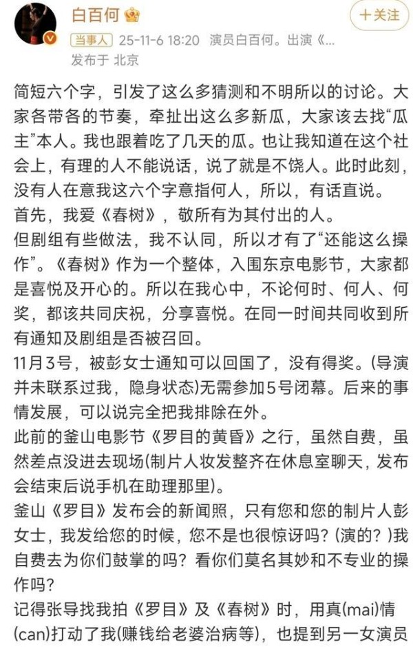 白百何那次回应《春树》电影获奖争议,一句“人品重如山,良心比金贵”,直接把八卦现场搅得安静七秒钟。