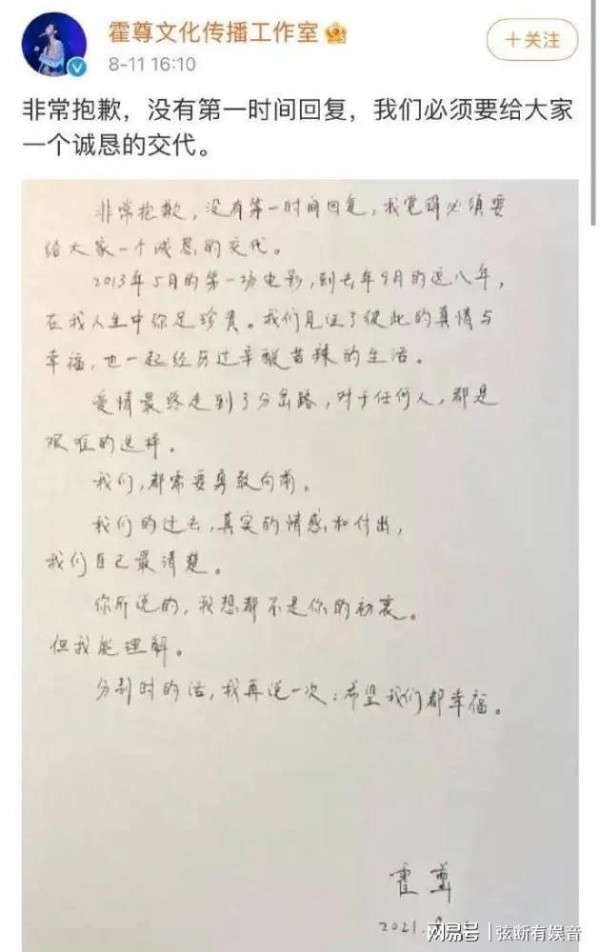 霍尊用手写的类似于情况说明书来进行一个回应,并配文给大家的一个诚恳的交代。但从内容来看,可以这么说:回应了但是没完全回应。因为内容只是简单对阐述了两人已经分手了,对陈露长文里所说对细节可以说丝毫没有关系。