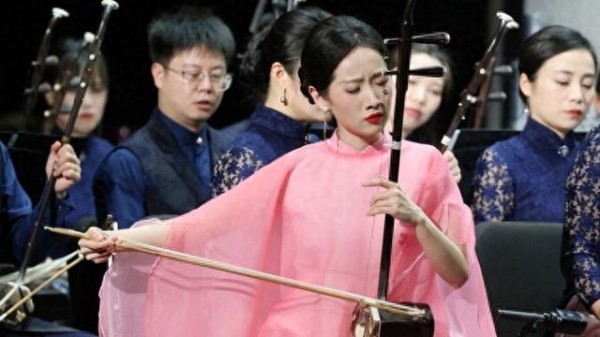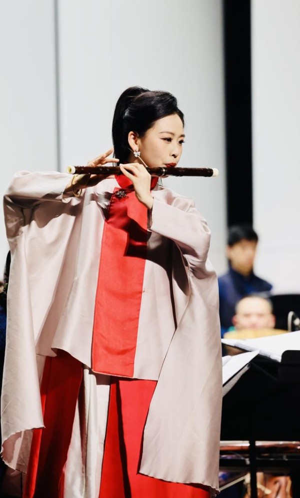 与经典乐团时常上演德奥、俄罗斯等西方交响乐经典曲目不同,“新人新作”音乐会更贴近当下。昨晚开场的打击乐演奏家胡嘉倩,全身银色珠片登台,演绎架子鼓、马林巴,与民乐团配合展现京剧打击乐中“仓”与“才”的当代变奏。观演体验颇神奇。二胡演奏家董施栾与乐队配合上演谭盾的《火祭》,打击乐模仿了风声、人声还有吟唱,能让人听出画面感……还有郭文景创作时没有考虑过笛萧演奏家是否能呈现的《愁空山》,“几乎10年内没有演奏家有能力再现,直至遇到唐俊乔”。昨晚登台演绎的就是唐俊乔的学生高雅……这些曲目颇不常见。