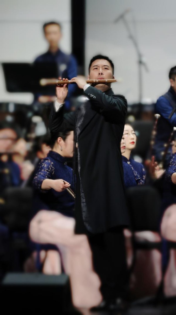 王勇偶尔会口误但也幽默地绕回来:“演奏者李晓晨,哦,是李晨晓——说明真的是新人新作音乐会呐!”他随即补充:“大家看到民乐团里的笛箫演奏家金锴,看起来很年轻,但已在民乐团20多年啦!”像这样的名家,在新人新作的舞台上,都是担任伴奏。