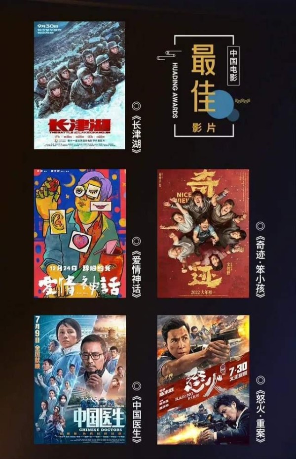 第33届华鼎奖提名名单公布,《长津湖》《中国医生》《爱情神话》《奇迹·笨小孩》《怒火·重案》提名中国电影最佳影片,《爱情神话》获得中国最佳影片、最佳导演、最佳编剧、最佳男女主角、最佳男女配角、最佳制片人8项提名领跑,成为最大黑马。