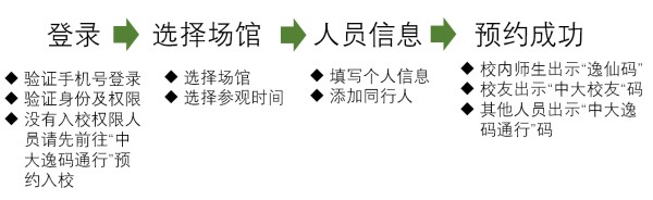 3)校外人员请先通过“中大逸码通行”微信小程序进行入校申请,获得入校凭证后再通过“中山大学博物馆校史馆预约”微信小程序办理场馆预约。
