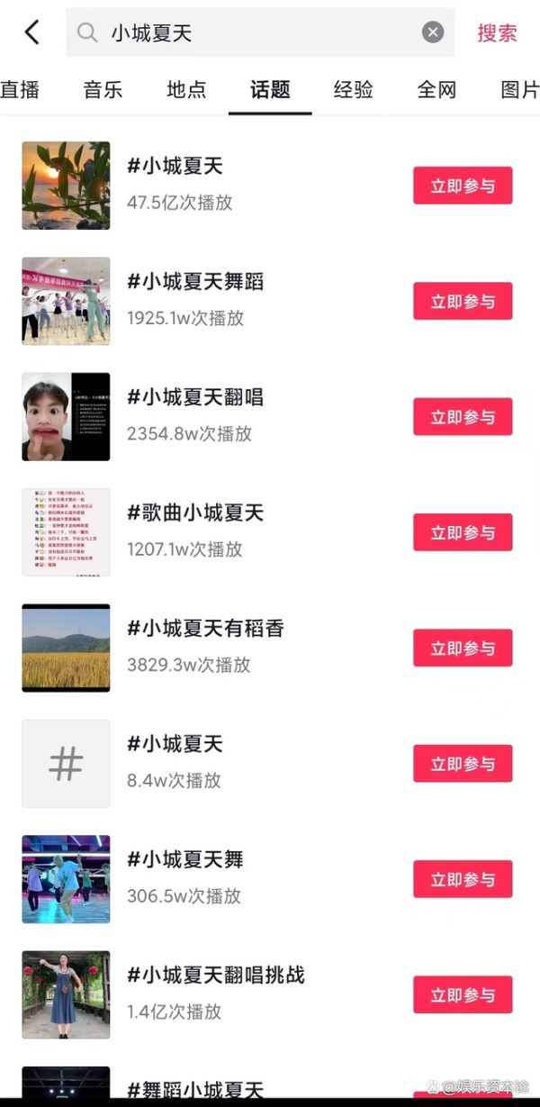 比如,LBI利比的《小城夏天》目前在抖音上有超过2400万用户在短视频中使用,位于抖音音乐榜飙升榜第5位,热度由抖音扩散至其他音乐平台,迅速攀升网易云热歌榜第二和qq音乐热搜第二。在可视化的宣发推动下,#小城夏天翻唱挑战 抖音话题有超1.4亿次播放,#小城夏天有稻香 相关话题投稿视频也有超过3800万次播放。