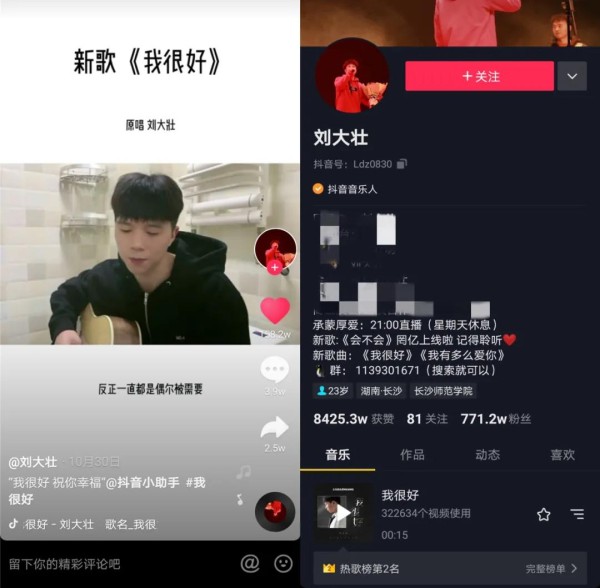 今年刚刚大学毕业的刘大壮或许不曾想到,他在10月底发布的歌曲《我很好》会在不到一个月的时间内成为全网级爆款。这首歌目前短视频投稿累计超过20万,播放量达到20亿次;也成为第一首流媒体平台日均播放破千万的歌曲,上线一周登顶网易云飙升榜NO.1,飙升值688%。