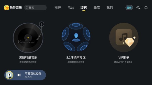 能够看出,在“内容为王”的音乐行业中,一向以好音质著称的酷我音乐在车载端延续了内容精品化的思路。6.0版本中凝聚了多个酷我车载声音实验室的代表性研发成果——黑胶转录音乐、5.1环绕声专区、Hi-Res音质、全息声音场景等,营造或真实极致、或身临其境的听觉感受。