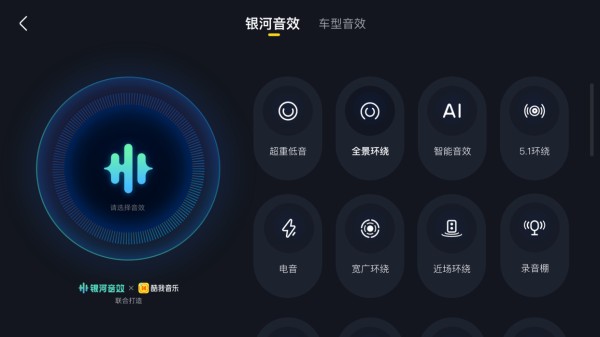 与此同时,酷我音乐车载6.0版本中推出了银河音效功能,其中预置了20多种特色效果,例如超重低音、录音棚、电音等等,均针对车载环境进行定制与调音。用户可以依据个人喜好和歌曲风格选择不同音效,满足其个性化、多样化的听歌需求。