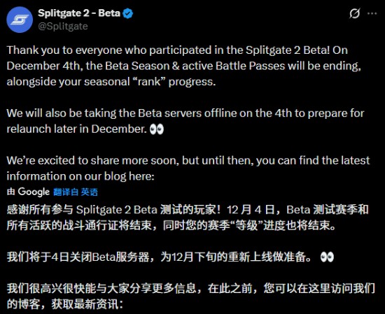 现在,在四个月的沉寂之后,工作室再次整装待发。服务器确认将于12月4日关闭,为同月内某个未公布日期的全面重启做准备。