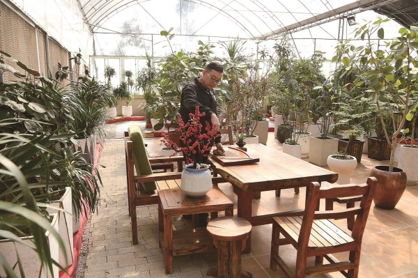 11时,忙了一上午的夫妻二人,来到花卉绿植萦绕的馆舍一角休息。在他们的布置下,面积近2000平方米的展示区内,精心布设了10多个体验式休闲场景,有仿厅堂的茶座,有仿庭院的水池,还有聚会烧烤等多种情景。每个场景都以花卉绿植萦绕,极富生活化情调。“很多客人来了之后,游走花卉绿植丛间,都会尝试置身多种场景,以深入体验花卉绿植带来的愉悦心情。”小月说,设置这些场景的目的就是让大家体会,生活中有鲜花的地方,心情也会开心快乐。