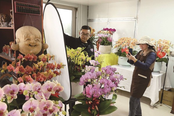 16时,忙了一天的夫妻二人,服务完几拨客人,刚坐下休息,一位客户微信发来留言说:想看一下新到的蝴蝶兰。于是两人一个打光,一个拍摄,赶忙给客户把图片发过去。