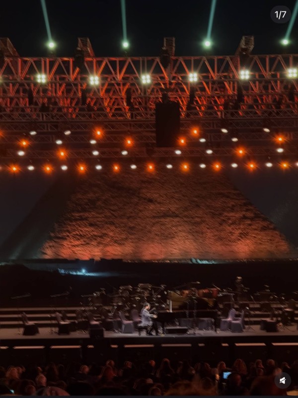 当天晚上,首届“金字塔回响”音乐节在埃及首都开罗附近的吉萨金字塔景区举行,郎朗以精彩的钢琴独奏音乐会为本届音乐节拉开序幕。他不仅演奏了法国音乐大师德彪西、匈牙利作曲家李斯特、波兰音乐家肖邦等在内的代表作,还带来了中国民歌《茉莉花》和改编自埃及作曲家赛义德·达尔维什(Sayed Darwish)的《尼罗河畔之歌》(Song at Nile River's Bank),赢得观众阵阵掌声。 郎朗下半场还和皇家爱乐乐团合作了《格里格协奏曲》