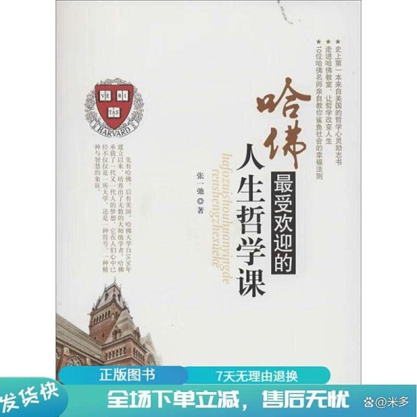 在书海中寻觅一本正版旧书,如同在时光的河流里拾起一颗珍珠。这本《哈佛的人生哲学课》,承载着岁月的沉淀与智慧的结晶,每一页都散发着淡淡的墨香。它不仅仅是一本书,更是一位智者,用哈佛的智慧,为你点亮人生的灯塔。翻开书页,你会感受到哈佛教授们深邃的思想,那些关于人生、关于哲学的探讨,仿佛在耳边低语,引导你思考,启迪你的心灵。这本旧书,虽然历经岁月,却依然保持着它最初的温度与光泽。它见证了许多人的成长,如今,它期待着与你相遇,共同开启一段哲学之旅。在阅读中,你会发现,人生的意义不在于长短,而在于深度与广度。让这本书成为你人生路上的良师益友,陪伴你走过每一个春夏秋冬。