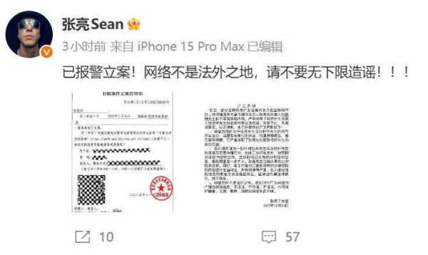 演员张亮:已报警立案!喻恩泰正面回应婚变风波:纯属捕风捉影,已报警立案