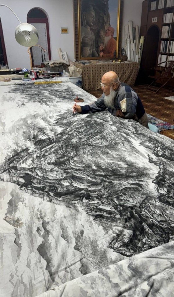“以艺术之名,呼和平之声”是这幅作品的核心主旨。杨彦耗时数年,足迹遍布五洲,以亲身见闻融入创作,用笔墨传递对世界和平、文明共生、共赢的深切期盼。作品中,自然与人文交织,东方笔墨与世界视野之呈现,既展示了中国传统绘画的笔墨意境,又彰显了全球化时代的人类共同价值,成就了超越国界、联结心灵的艺术成果。