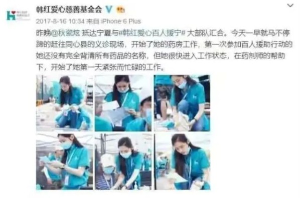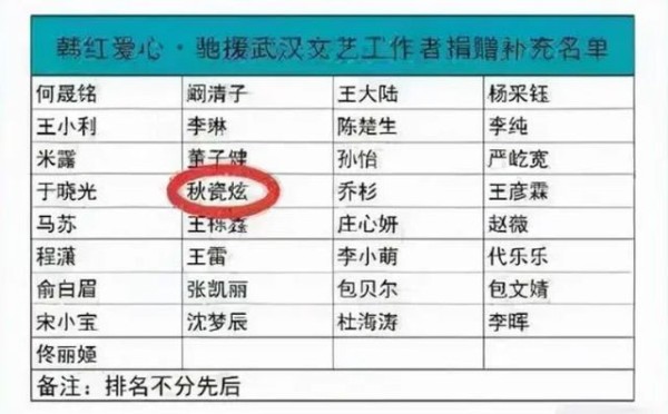 在2020年因为yq,许多明星都积极捐款,在众多明星捐款名单中,秋瓷炫的名字显得很突出,她是为数不多的外籍明星捐款的,反倒是许多外国籍的华人演员没有捐款被吐槽,比如:张铁林。秋瓷炫除了捐款,她还奔赴一线做义工,非常的了不起,这已经不是她第一次做慈善了。