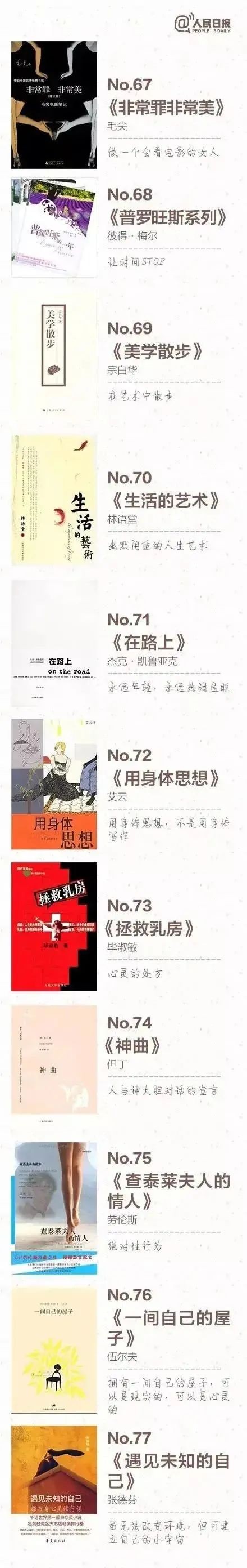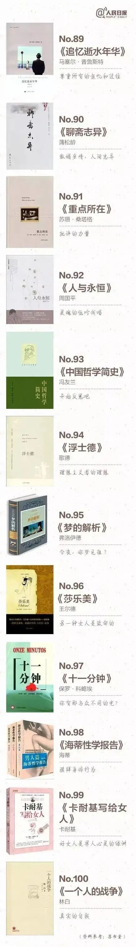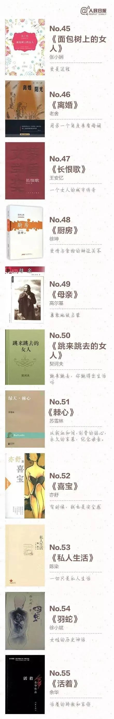 原标题:《人民日报:女性必读的100本书(建议收藏)》