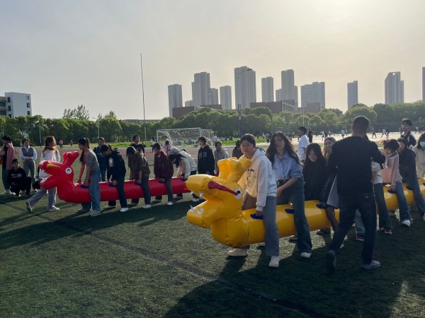 龙舟竞赛齐奋进 趣味游戏喜迎春---应用外语系成功举办旱地龙舟比赛