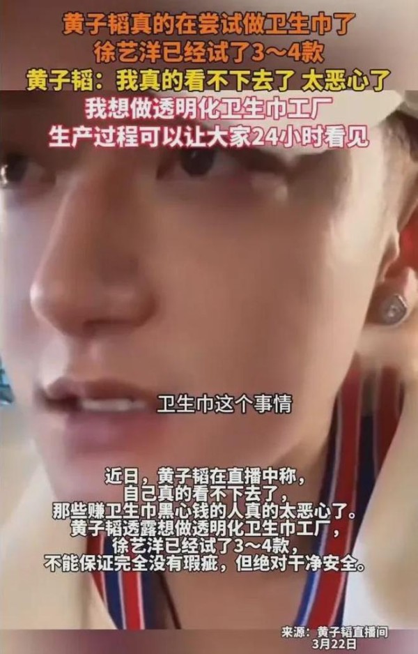 明星黄子韬宣布要做卫生巾,别让卫生巾话题沦为流量收割工具!