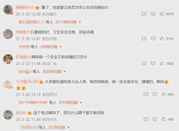 而质疑黄子韬的一方却表达了了异常尖锐的质疑声:“男明星卖卫生巾?怕不是割韭菜新套路?”、“贴牌代工的话,徐艺洋用一百箱也验不出问题!”
