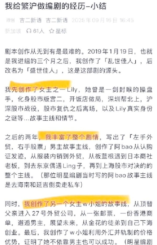 此事并未就此平息。随着大家深入挖掘,发现王家卫在剧本方面的“掠夺行为”并非孤例。曾参与《繁花》编剧的古二,在社交媒体上透露,他为商战部分撰写了多稿剧本,然而最终却连署名权都无法获得。这种长期压抑的委屈,随着录音的曝光而如暴风雨般涌现。