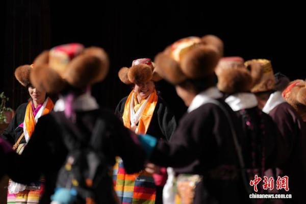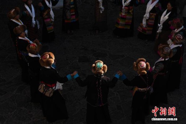11月28日,随着藏历十月十五白拉姆节临近,连日来,拉萨及周边信众身着色彩艳丽的藏装节日盛装,手持从家中精心准备的头等青稞酒、新收的青稞及新鲜水果,陆续前往大昭寺、色拉寺、哲蚌寺等寺庙朝拜祈福。大昭寺内,信众敬献供品后载歌载舞,歌声悠扬、舞步轻快,尽显节日喜悦。白拉姆节又称 “仙女节”。相传,白拉姆是拉萨地区的保护神,是藏传佛教最高护法神之一班丹拉姆的女儿。白拉姆曾与大昭寺护法神赤尊赞相互爱慕并私定终身,其母亲班丹拉姆发现后,赤尊赞被赶到拉萨河南岸,每逢藏历十月十五日,二人才能隔河相见一次。图为白拉姆节临近之际,信众在大昭寺内敬献供品后载歌载舞的场景。贡确 摄