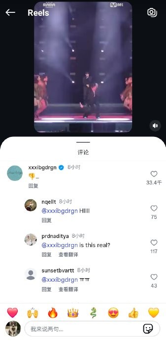 #权志龙踩MAMA# 在MAMA官方发布的权志龙舞台reel视频下评论了“...”#权志龙[超话]##2025MAMA#