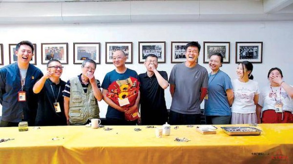 在文保修复部的吕团结退休仪式上,铜器组的修复师一起合影留念