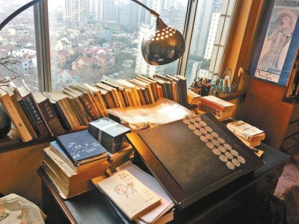 因为单位离老马家不远,也常去他家里组稿,喝咖啡,聊天。看到了他的书桌,不是红木之类的派头和身价,唯一独特显眼的,是书桌上还有一块写字板,约莫三十度的斜面。我坐在书桌边,试一试写字板的感觉,不需要伏案,想象力似乎就增加了,写起字来别有一种享受和惬意,而不是爬格子的苦劳。老马所有的文章都在这张书桌上完成。桌上笔筒有笔有剪刀,剪刀是用来剪一小格一小格文稿纸,再粘上去的。我对老马说,如果再有一支法兰西情调的鹅毛笔,它会与你更加贴切,时光也就会倒流一百年。