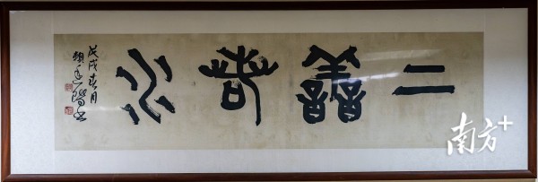 艺术是传播文化最生动的语言。2024年,赖廷阶的篆书作品《唯用一好心》入选“艺脉相承·北京地铁主题巡展”,成为巡展中唯一来自粤西地区的文化作品。在北京地铁1号线、2号线、5号线等八条线路的站厅与车厢里,这笔力遒劲的篆书每日与数百万乘客相遇。