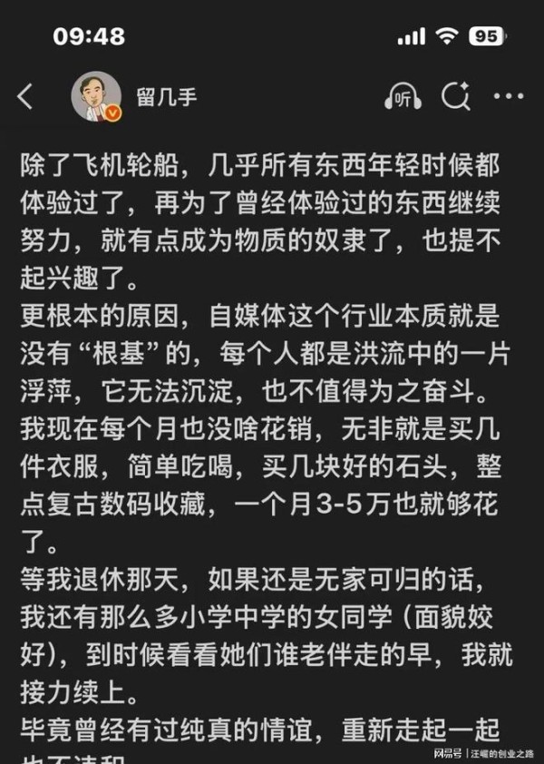 离都离了,自己一天天在网络上yy,说离婚后又行了,一会儿想“玩女网红”,一会儿又是老了以后要找漂亮保姆。