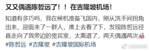 #网友两天偶遇两次陈哲远# 网友在吉隆坡两天偶遇了两次@陈哲远-