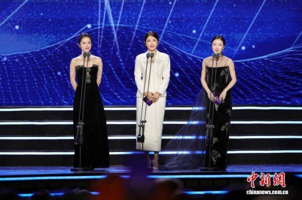 图为曾黎(中)、江一燕(左)、徐娇推介金椰奖官方入围纪录片。中新社记者 骆云飞 摄
