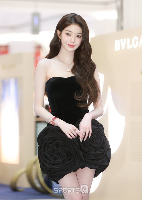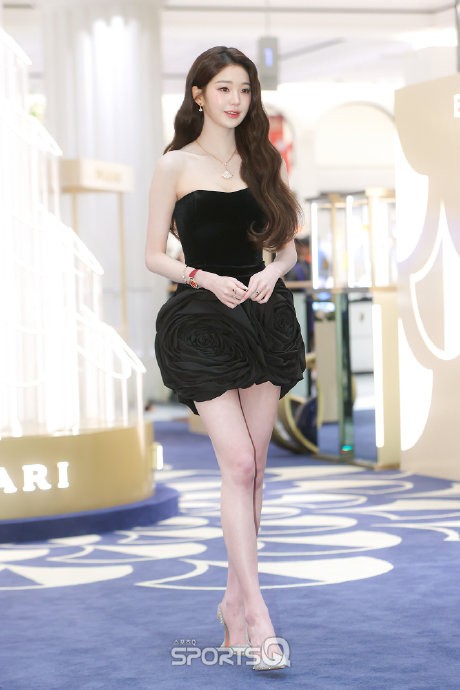 张元英出席宝格丽活动,穿MAROBE花朵礼服搭配闪钻高跟鞋