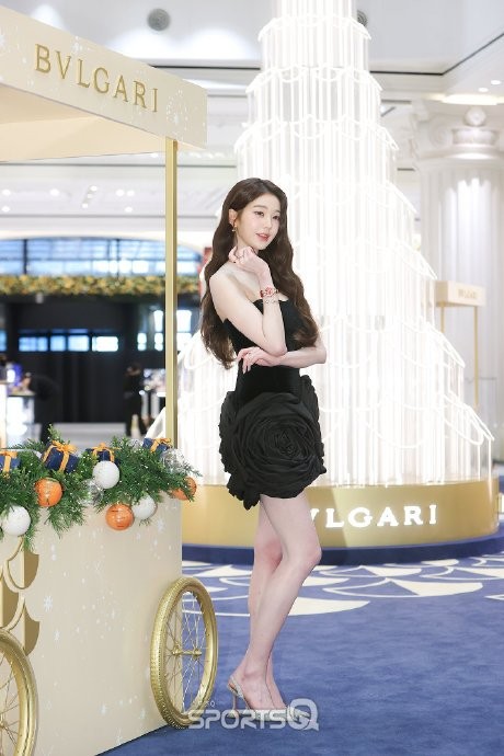 张元英 BVLGARI快闪活动造型,黑色花朵礼服来自MAROBE 25秋冬系列,搭配一双AMINA MUADDI 闪钻高跟鞋,佩戴宝格丽珠宝