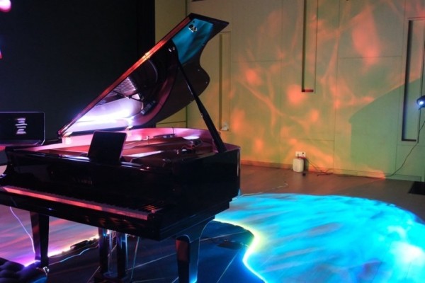 作品中,刘欣谕打破了传统演出的“第四堵墙”。观众以灯光装置或绘图界面输入的视觉信号,会被系统实时捕捉并投射到舞台光线中,而这些光线变化又反过来影响钢琴的即兴走向。舞台因此形成一个由在场者共同推动的动态结构:声音与光在不断的反馈循环中生成,使演奏脱离既定轨迹,在现场关系中持续调整。每一场都呈现出难以复制的独特过程。