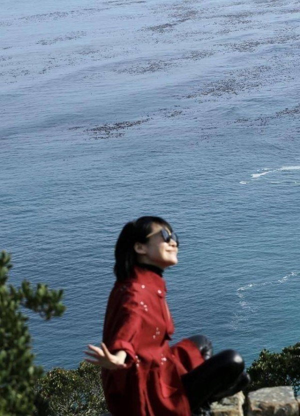 56岁许晴现身国外旅游,风衣皮裤配短发,时髦减龄超洋气