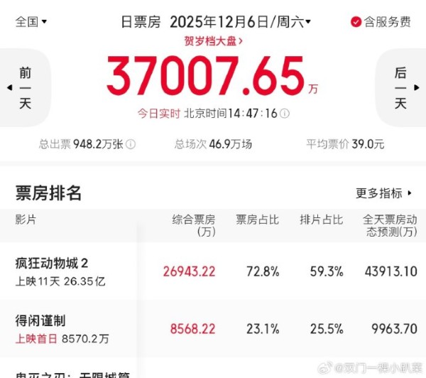 #得闲谨制票房倒挂#得闲谨制上映首日票房倒挂,上映前预测首日票房过亿,现在只有九千多万了,各项数据都在下滑。