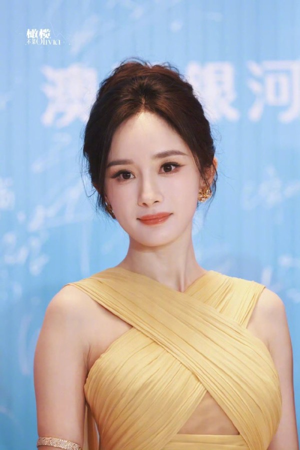 杨幂赞惠英红双丸子头可爱,红毯反问庞博时尚话题