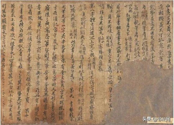 关于究竟是十章,还是十二章,后人争论千年,一直没有结果,直到1900年,敦煌藏经洞问世,才确认是十章,洞内找出一幅王羲之书论罕见手稿,据专家推测,应是唐朝时期,由“宫廷抄经生”所写,字字生动润丽、俊逸绰约,充满着仙气。