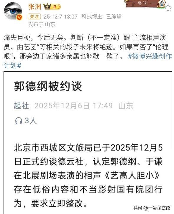 郭德纲相声被举报低俗,要求整改郭德纲“造谣抹黑国营院团”遭“约谈”?北京市西城区文旅局回应