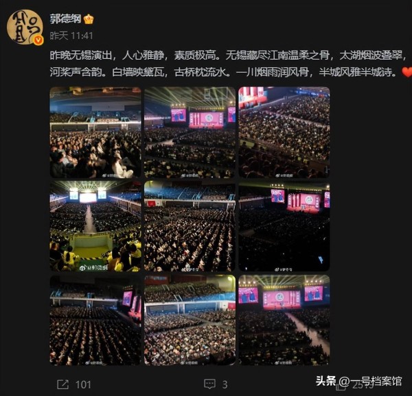 “昨晚无锡演出,人心雅静,素质极高。”