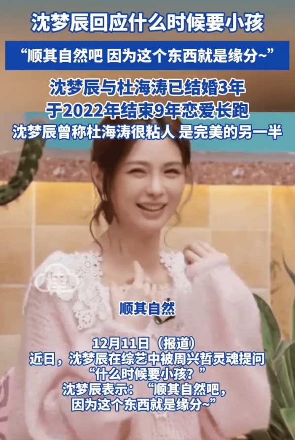沈梦辰回应生子计划:顺其自然,这事全靠缘分