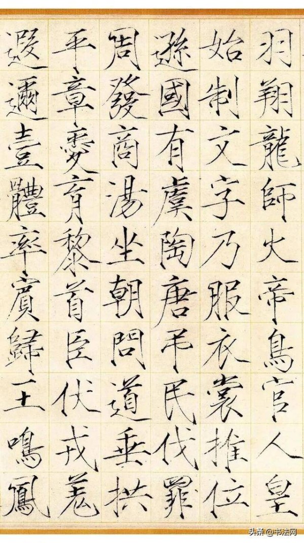 宋徽宗最经典的“瘦金体”作品,就是《瘦金千字文》,写于崇宁三年,彼时宋徽宗23岁,听闻北宋大军,灭掉了吐蕃宗喀国的喜讯,特意撰写此帖,奖赏给凯旋归来的大臣们,用笔瘦劲清爽,字字如刀,笔笔如剑,把筋骨露在外面,韧性质素,极具个性和华贵气