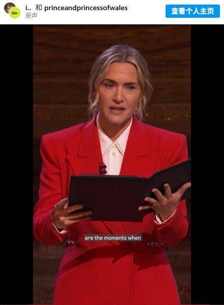 更令人期待的是,威廉王子和凯特王妃的官方Instagram账号近日发布了一段温斯莱特朗读的片段,为即将播出的电视特别节目预热。